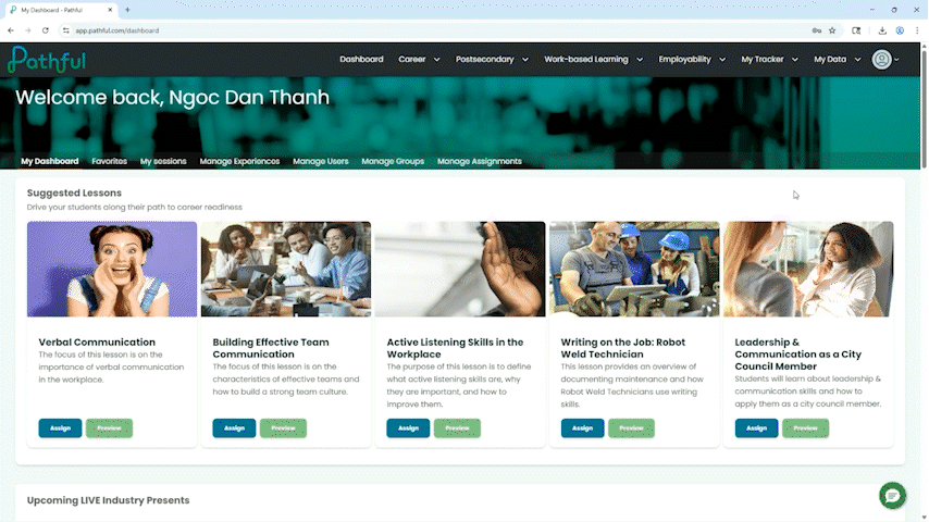 Both tools can be assigned through a FlexLesson. Pathful also offers pre-built FlexLessons for Resumes and Cover Letters, but educators can create their own assignments that guide students directly to the tools.