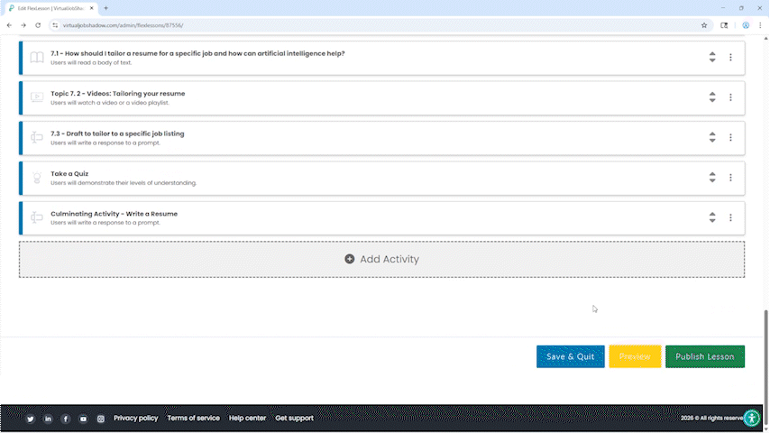Many educators choose to clone an existing lesson because it provides a strong starting structure while still allowing full flexibility. Others prefer to build a Custom FlexLesson from the ground up when they have a very specific experience in mind. Both approaches are fully supported.