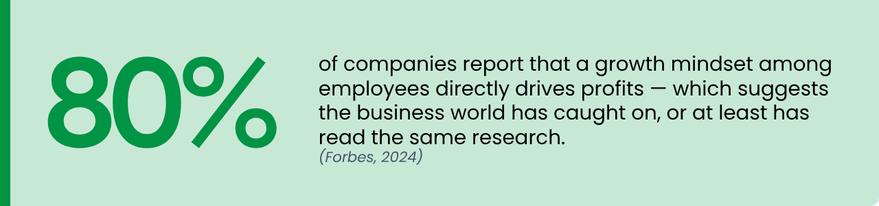 Forbes — 80% of Companies Say a Growth Mindset Among Employees Directly Drives Profits (Robinson, 2024): https://www.forbes.com/sites/bryanrobinson/2024/10/27/80-of-companies-say-a-growth-mindset-among-employees-directly-drives-profits/