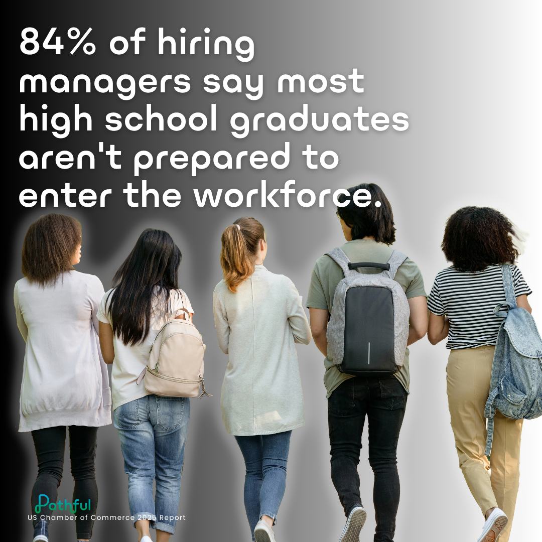 84% of hiring managers say most high school graduates aren't prepared to enter the workforce, according to the New Hire Readiness Report 2025: Insights from Hiring Managers on Entry-Level Workforce Preparedness, conducted jointly by the U.S. Chamber of Commerce and the College Board. Even more telling? 80% believe recent graduates are less prepared than those from previous generations.