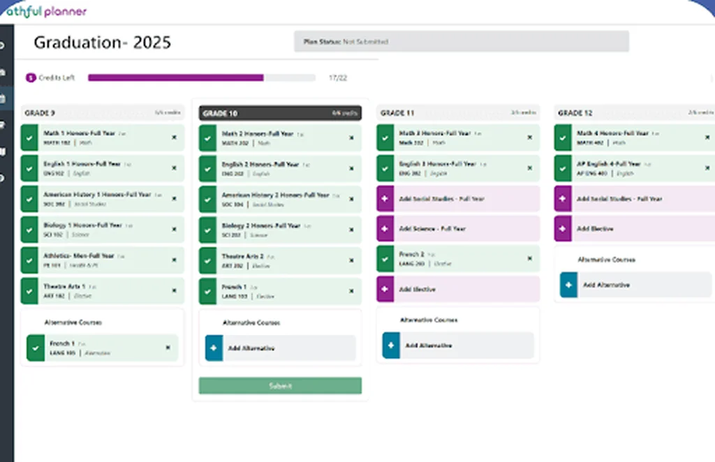 Pathful Planner allows students and counselors to create 4-6 year secondary graduation plans.